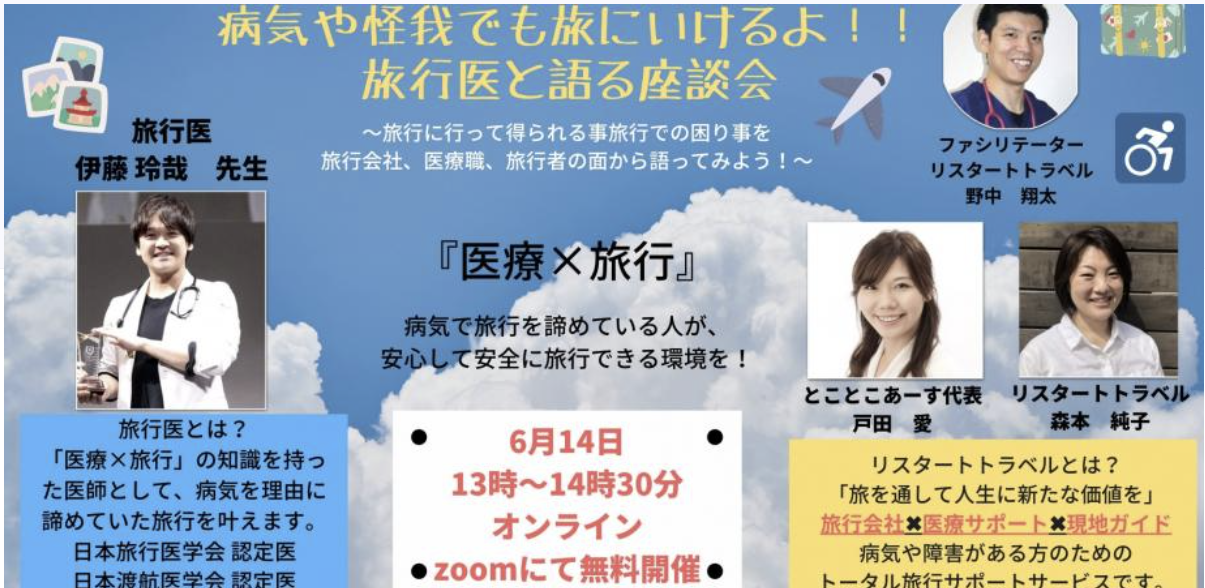 また病気や障害が理由で旅(=日常と異なる文化や人、価値観と出逢う機会)を諦めてしまっている方の世界も広げていきたいと思い、修学旅行相談や旅行支援者向けの啓発活動も行っております。